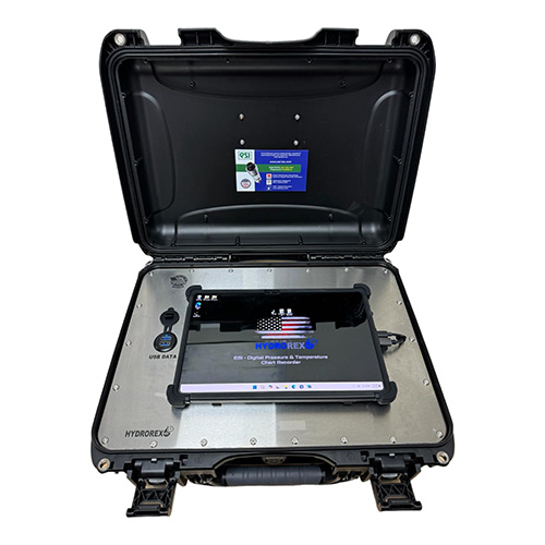 • ESI Digital Pressure & Temperature Chart Recorder: Introducing the American Digital Pressure & Temperature Chart Recorder choice of pressure ranges from 0 up to 60,000 Psi ( 0-5000 Bar) with a 0.15% accuracy availble.  Create customised pressure test certificate and reports. Electric 110V ( 220V Converter available), Touchscreen panel PC in 12 inch mount on stainless control panel. Weatherproof mobile case.